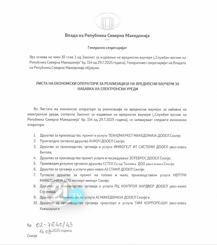 Владата ја објави листата на оператори каде што студентите ќе можат да користат ваучери за купување електронски уреди.