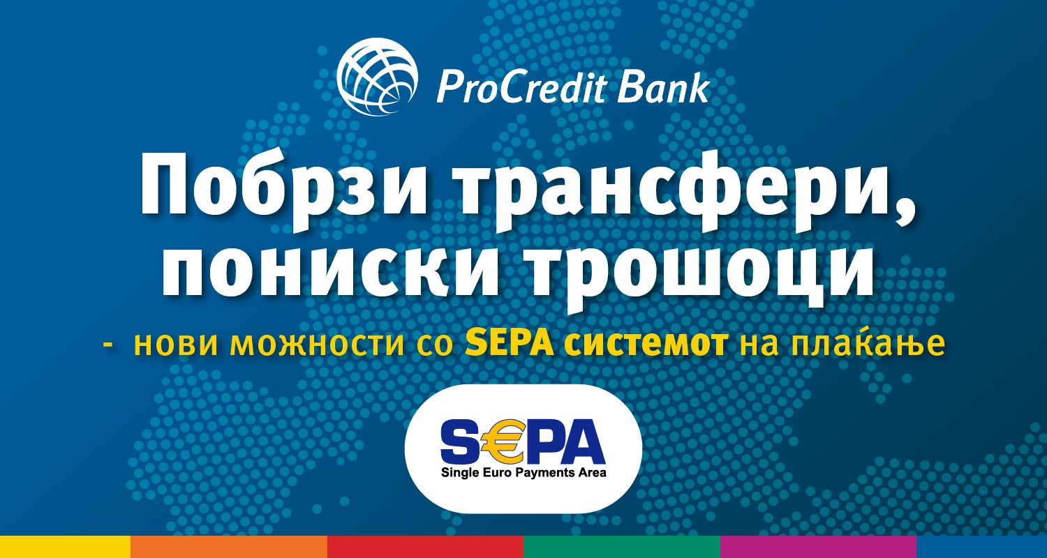 ПроКредит Банка АД Скопје од денес ќе овозможи брзи, сигурни и поволни евро-трансфери, благодарение на своето приклучување кон SEPA (Single Euro Payments Area – Единствена област за плаќања во евра).