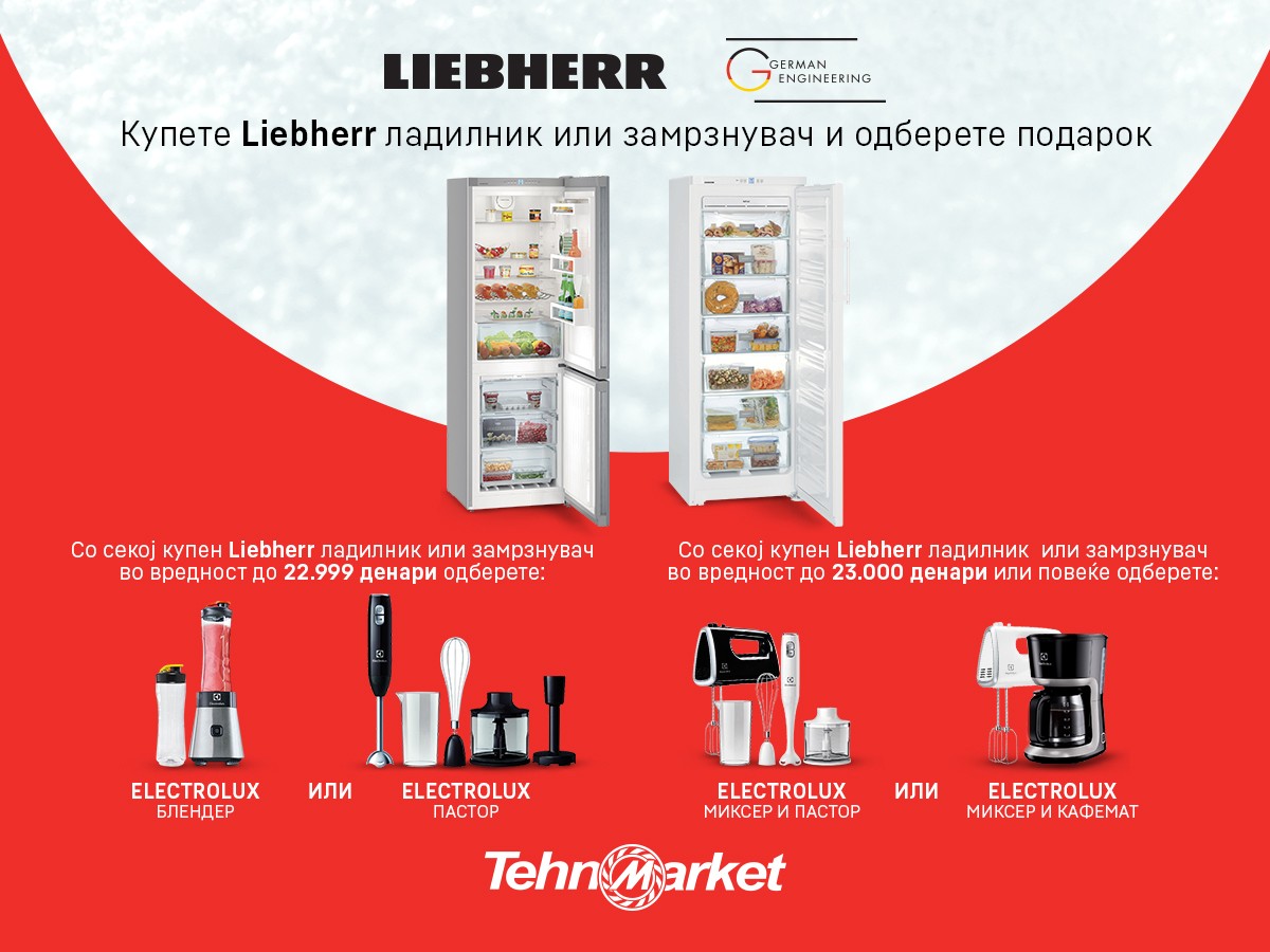 · Electrolux блендер или пастор за секој купен Liebherr ладилник или замрзнувач во вредност до 22.999ден.