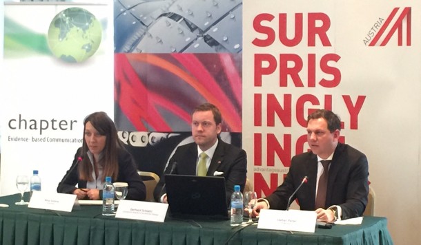 „Ова е трет пат што ја прашуваме австриската бизнис заедница за нејзините видувања за економската ситуација во Македонија. За жал, една четвртина од нив, генерално, се песимисти за 2016 година во однос на минатата година, иако покажуваат оптимизам кога станува збор за состојбата во нивната компанија. Половина од нив планираат да вработат нови луѓе. Сепак, прашање број еден за австриските компании е политичката стабилност и затоа, тие внимателно го следат развојот на настаните“, рече Герхард Шлатл, трговско аташе на Република Австрија во Република Македонија.