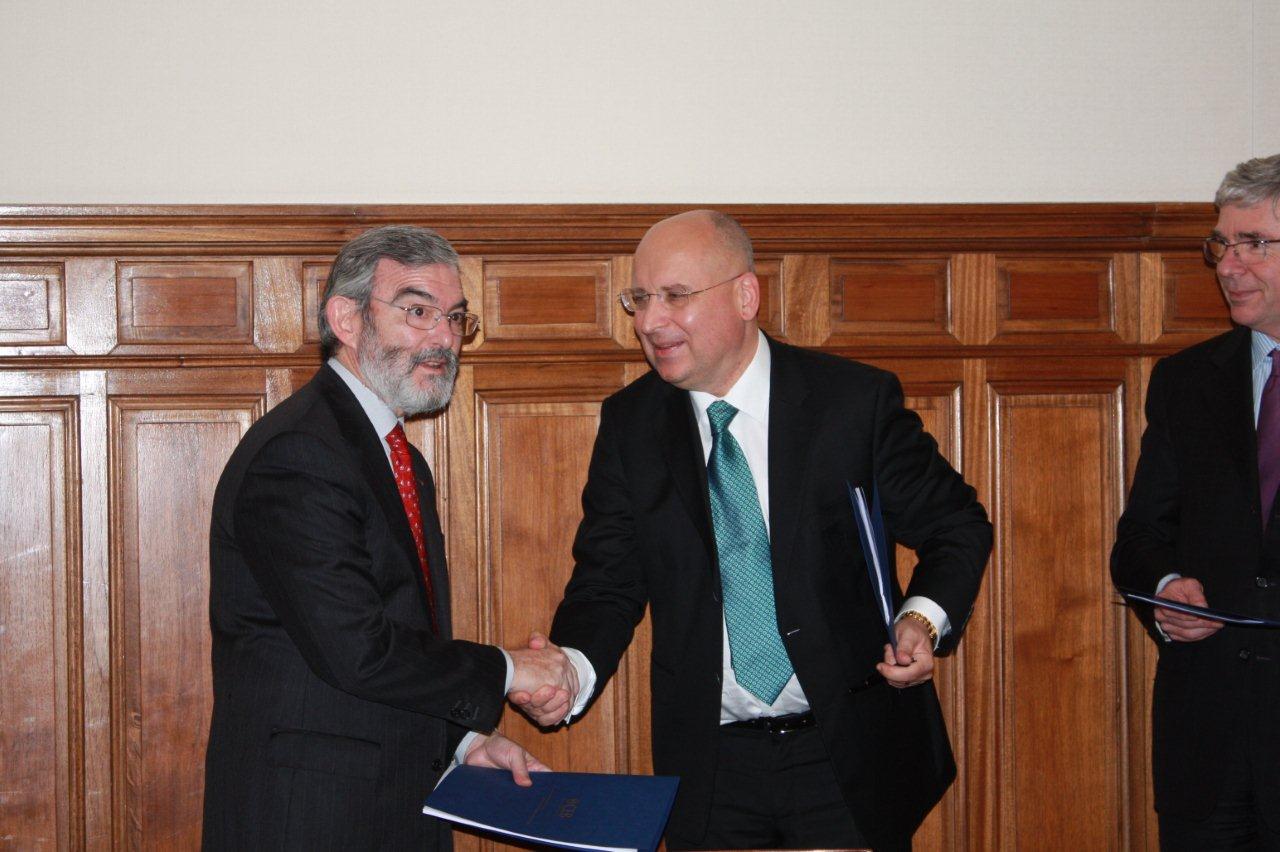 Г. Аполонио Руиз Лигеро, Вицегувернерот на ЦЕБ изјави: „Со големо задоволство денес потпишавме Рамковен договор со Охридска банка Сосиете Женерал и на тој начин го потврдивме процесот на воспоставување на силна врска со една од најистакнатите институции во финансирање на мали и средни претпријатија во Македонија. Кредитот на ЦЕБ ќе придонесе за подобрување на пристапот на македонските МСП до соодветни извори на финансирање кои се критични за нивниот развој и нивната способност за задржување и креирање на работни места“ .