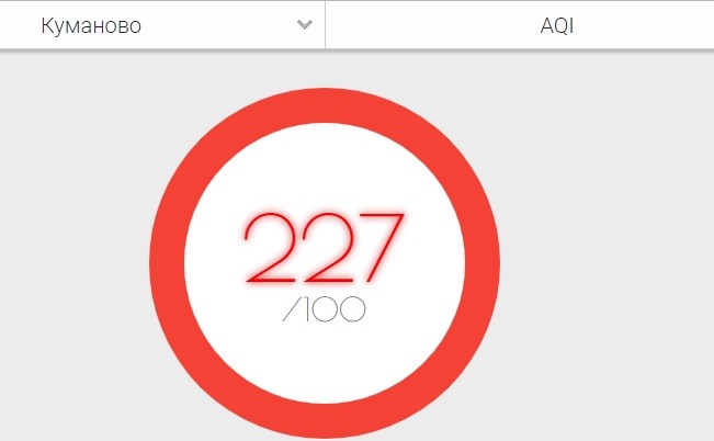 Во Куманово вечерва се измерени 227 ПМ на 100 микрограми, покажува апликацијата Мој воздух. Ова е неколку пати над дозволеното.