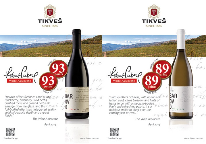 Осум вина на „Тиквеш“ добија високи оценки од „Wine advocate“ и Роберт Паркер