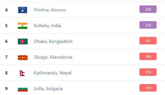 Приштина е на 4 место, а синоќа беше на втора позиција. Сараево е 11, а зад него на 12 место е Белград.
