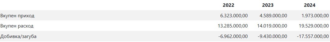 „Луна“ пак, е во слободен пад. во 2022 година била во минус од 6,9 милиони денари. Следната 2023 година, била во минус од 9,4 милиони денари, додека лани, фирмата влегла во минус од 17,5 милиони денари.