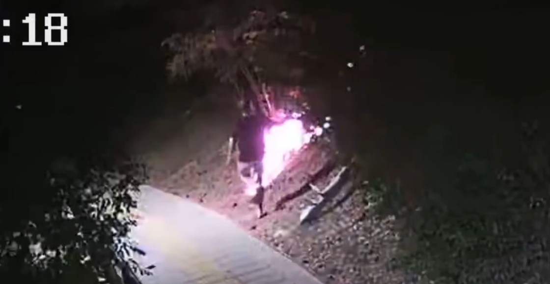 Страшна снимка се појави на социјалните мрежи од двајца приомани кои без тронка совест, најверојатно со запалки за цигари запалија оган во шумски предел.