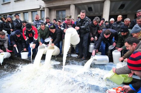 Фото: Побелеа улиците од истуреното млеко на српските сточари