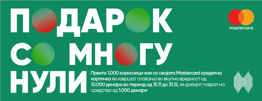 Кампањата наречена „Подарок со многу нули“ што стартува денеска и ќе трае до 31 декември, е наменета за физички лица кои се иматели на кредитни картички од брендот Mastercard (Mastercard Standard, Mastercard Credit Contactless и Mastercard World Contactless) издадени од Халкбанк АД Скопје.