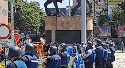 На денешните протести пред Собранието, полицијата приведе две лица.