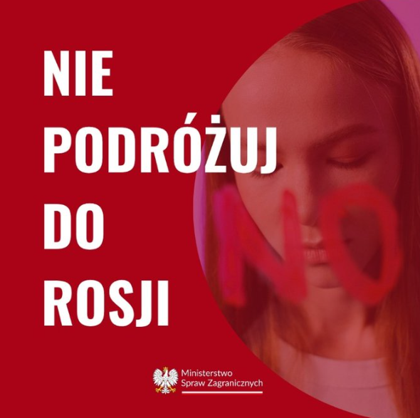 Според соопштението објавено на официјалната веб-страница на владата, министерството советува да се избегнува какво било патување во Русија, наведувајќи го конфликтот во Украина и официјалното прогласување на Полска од страна на Русија за „непријателска држава“.