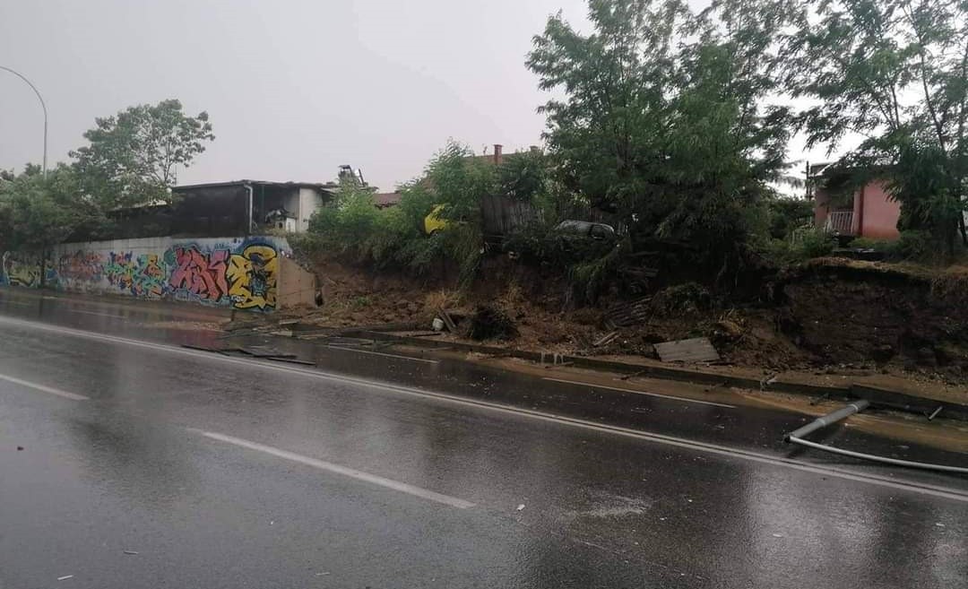 Денеска, по невремето, на булеварот Борис Трајковски паднал потпорниот ѕид во населбата Пинтија во Општина Кисела Вода.