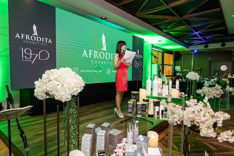 Во присуство на водечките дами од словенечкиот козметички бренд Афродита, Звонка Новак Хабот, заменик директорка, Јудита Железник, одговорна за односи со јавноста и Катја Посл, одговорна за продажба на странските пазари и во друштво на 100-тина дами од јавниот живот, во убавиот амбиент на „Рагуза 360“ во непосредна атмосфера, дружење и музика, беа одбележани 50 години од постоењето на Козметика Афродита.