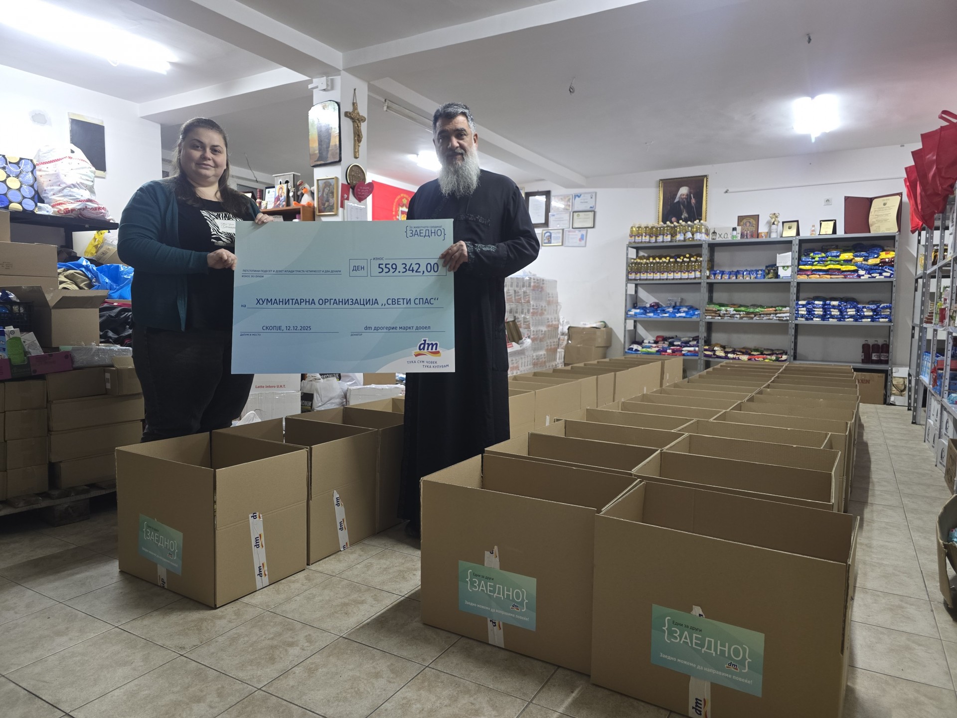 Празници полни со топлина: dm донираше повеќе од 200 пакети со основни прехранбени намирници, дистрибуирани преку хуманитарната организација ,,Свети Спас“