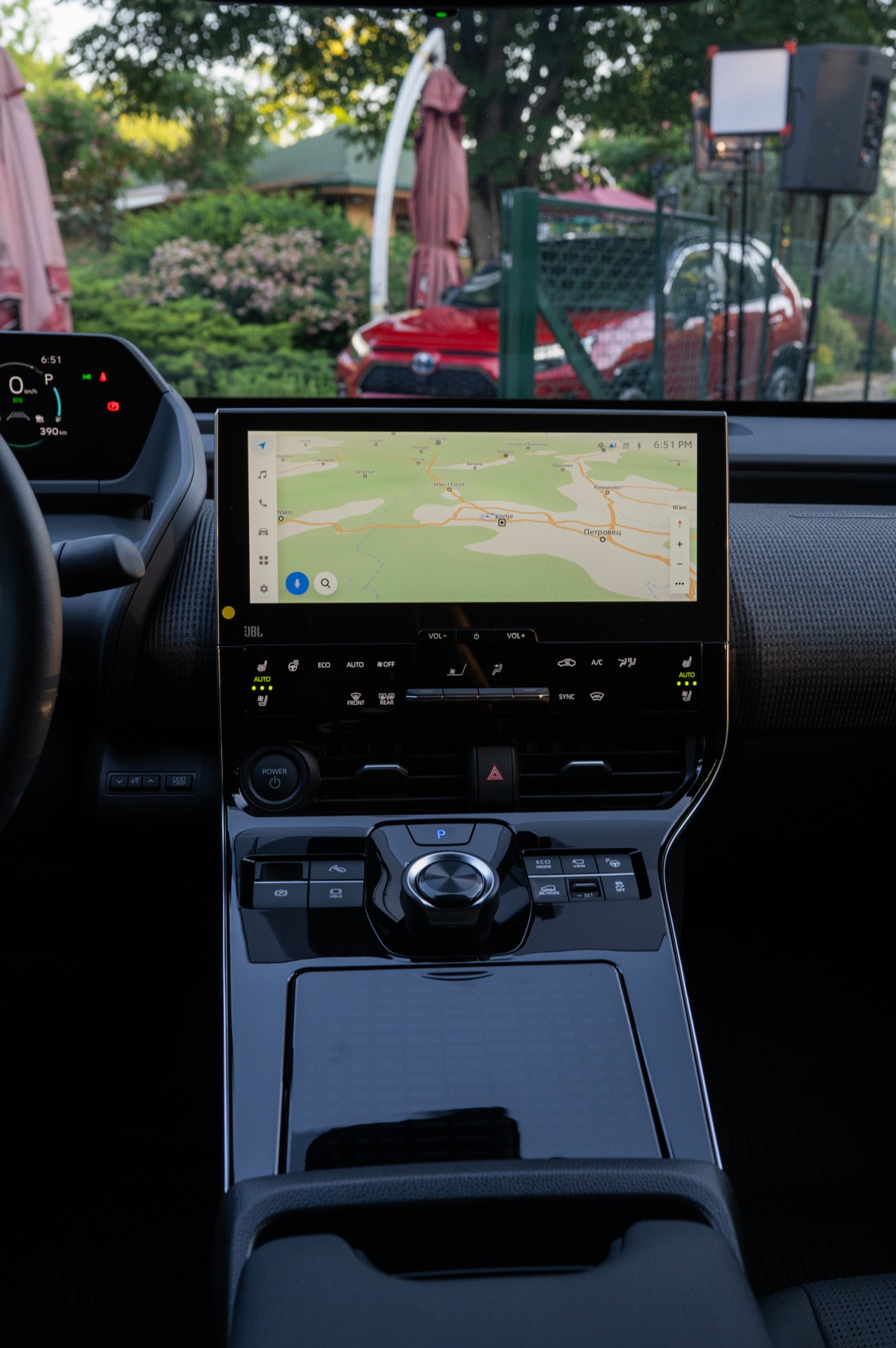 bZ4X ја користи најновата, помоќна мултимедијална платформа на Toyota со интуитивен екран на допир од 12” , овозможувајќи пристап до навигација базирана на облак (cloud)која овозможува планирање на патувањето, како и пренесување на најновите информации за сообраќајот и паркирањето. Исто така, обезбедува информации специфични за BEV, како што се досегот на возење, поддршка за возење и детали за станицата за полнење.