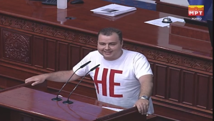 „Нема да дозволиме Софија да ни ги пишува учебниците. Нема да дозволиме нашиот јазик да биде нечиј дијалект“, рече пратеникот.