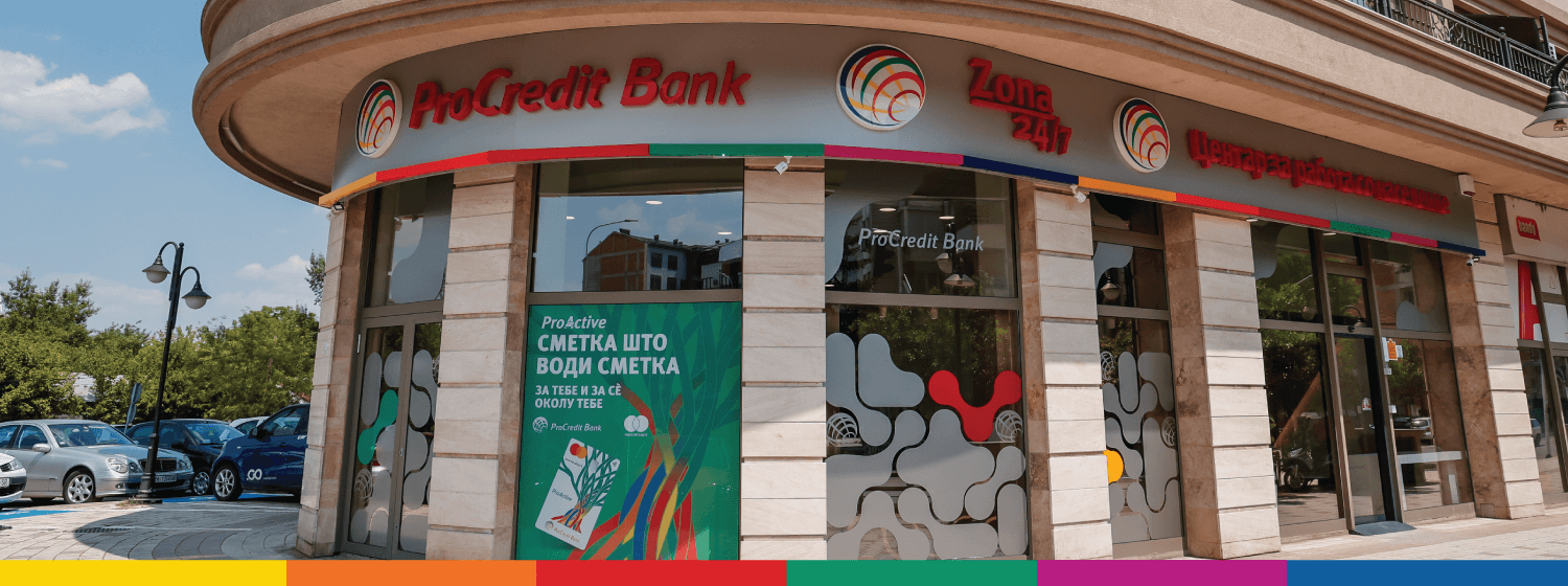 Центарот за работа со население на ПроКредит Банка се наоѓа на ул. Борис Трајковски бр. 1 во рамки на станбено-деловниот комплекс Адора Флат Ирон и е со работно време од 08:30 до 16:30 часот.