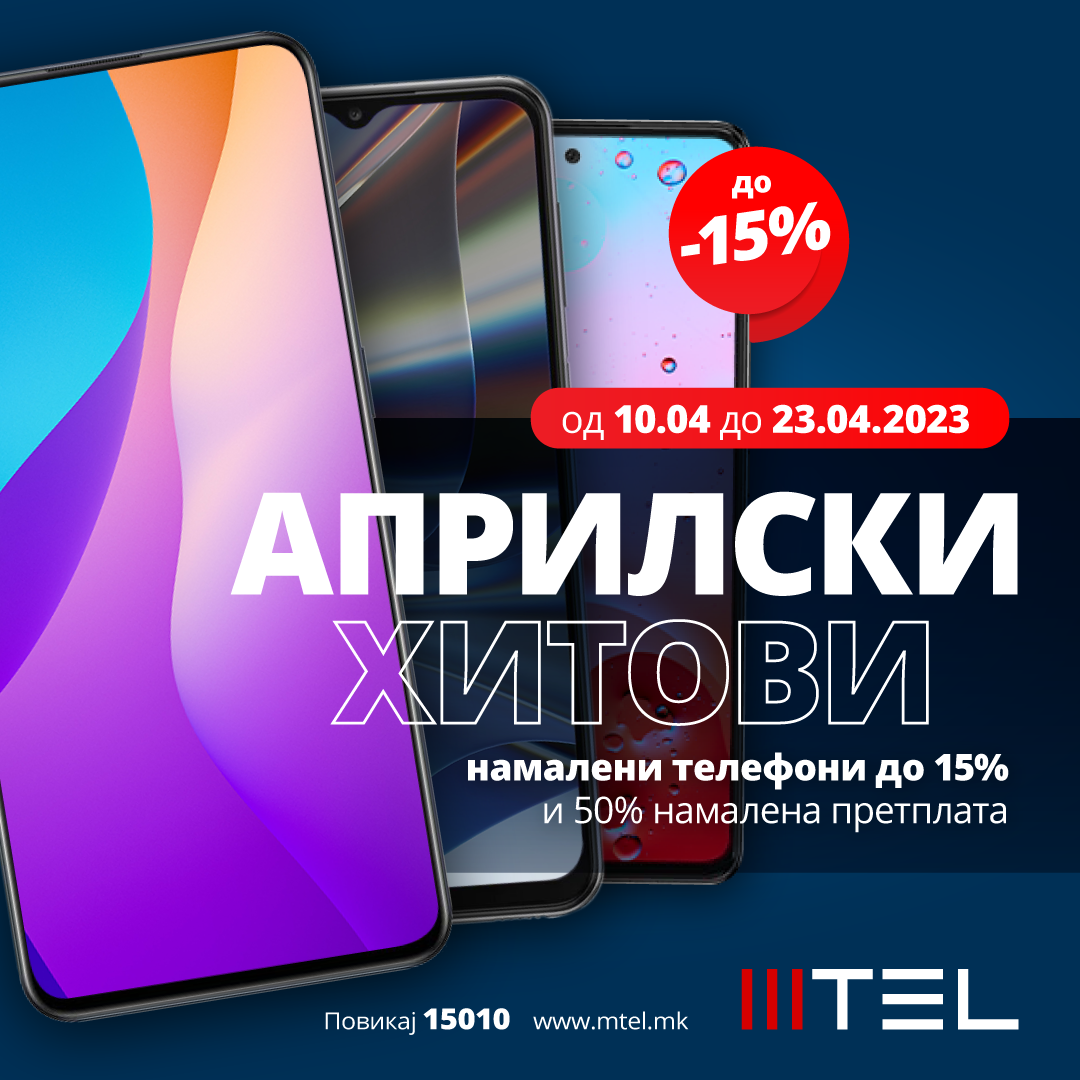 Од 10 до 23 април, со специјалната празнична понуда на МТЕЛ, новите постпејд корисници на телекомуникацискиот оператор добиваат низа поволности. Секој нов корисник кој ќе склучи договор за некоја од mCONNECT постпејд тарифите, добива 50 отсто попуст на претплатата во првите пет месеци. Дополнително, со секој нов договор на 24 месеци може да изберете еден од мобилните телефони со попуст до 15%.