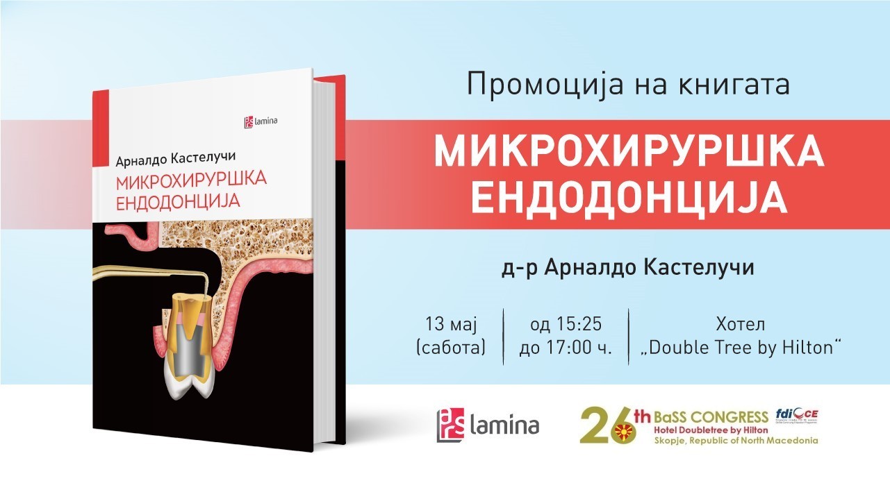 Книгата „Микрохируршка ендодонција“ ќе биде достапна за време на промоцијата на Кастелучи, на конгресот на BaSS (Balkan Stomatological Society) во хотелот „Double Tree By Hilton“, Скопје.