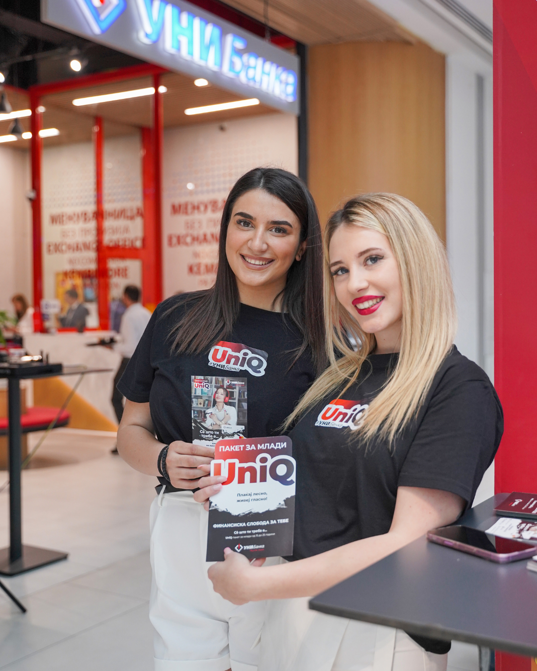УНИБанка со гордост ја претстави најновата банкарска понуда за млади – UniQ пакетот, на настан кој се одржа на 29 мај во експозитурата на банката во трговскиот центар East Gate.