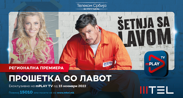 Со средба која што ќе резултира со експлозија со несогледливи последици почнува приказната за Светислав и Уна, невообичаена љубовна двојка срочена во новата хит серија „Прошетка со лавот“ чија регионална премиер вљубениците во добрите серии ќе може да ја следат ексклузивно од 15 ноември преку мобилната апликацијата mPLAY TV на телекомуникацискиот оператор МТЕЛ.
