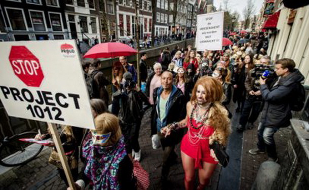 Стотици проститутки излегоа денеска на улиците на Амстердам дa протестираат против плановите на градските власти да ги затворат борделите во соседството со црвените фенери во кои соодветно облечени заштитнички на љубовта позираат за да привлечат муштерии, пренесува „Асошиејтед прес“.