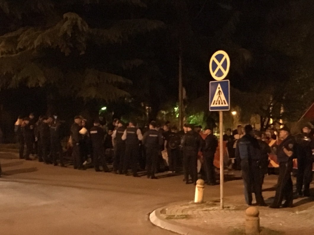 Припадници на полицијата ја обезбедуваат канцеларијата на претседателот.