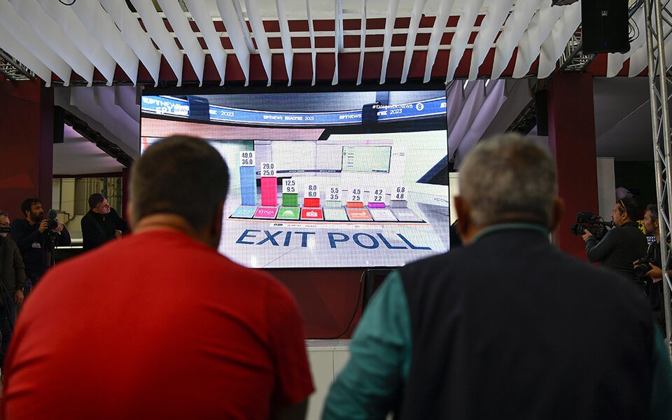.Резултатите од 80 отсто преброени exit poll за приватните телевизии се дека секоја од партиите би добила: Нова демократија од 36 до 40 отсто, СИРИЗА од 25 до 29 отсто, ПАСОК - Движење на промена од 9,50 до 12,50 отсто, Комунистичка партија на Грција од 6 до 8 отсто, Грчко решение од 3,50 до 5,50 отсто, МЕРА25 2,50 до 4,50 отсто