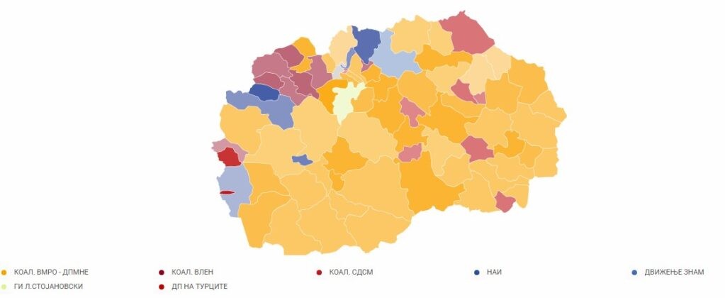 Првични резултати на ДИК: ВМРО-ДПМНЕ води во 52 општини, ВРЕДИ во девет, СДСМ во седум