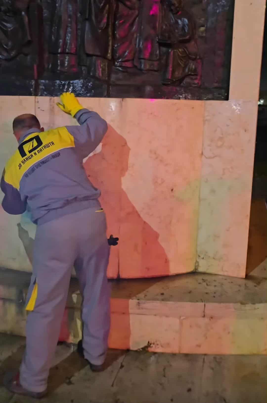 Во текот на вчерашното попладне, продолжи чистењето на Скопје и централното градско подрачје. Овој пат работниците рачно ги чистеа спомениците.