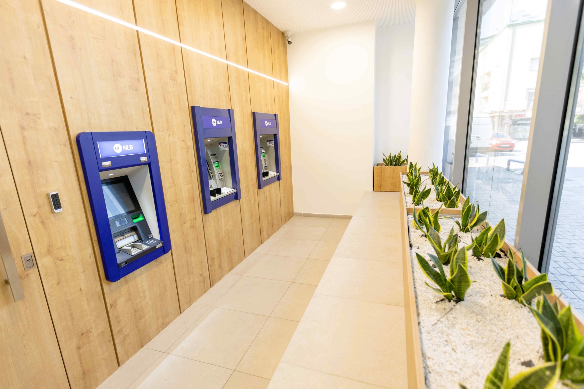 Реновираната експозитура на НЛБ, Куманово 1, се простира на површина од над 170м2. Истата е опремена со модерен ентериер, најсовремени технолошки решенија и професионален тим подготвен да одговори на потребите на клиентите од сите сегменти - физички лица, мали бизниси и корпоративни клиенти. Просторот е современ, пријатен и функционален со цел клиентите да можат брзо, безбедно и удобно да ги завршат своите банкарски потреби.