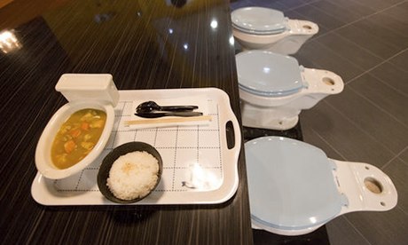 И самиот ресторанот се вика „Магичен тоалет " . Посетителите седат на тоалетни школки, а и масите се со истата форма. Човек би се зачуди кога би посетил сличен ресторан , но официјалното отворање на крајот на минатата недела беше спектакуларен успех .