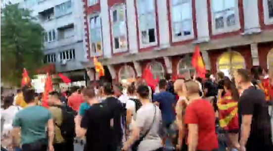 Демонстрантите ја пробија оградата пред Собранието и сега протестираат во дворот. Тие образложуваат зошто власта треба да го отфрли францускиот предлог.
