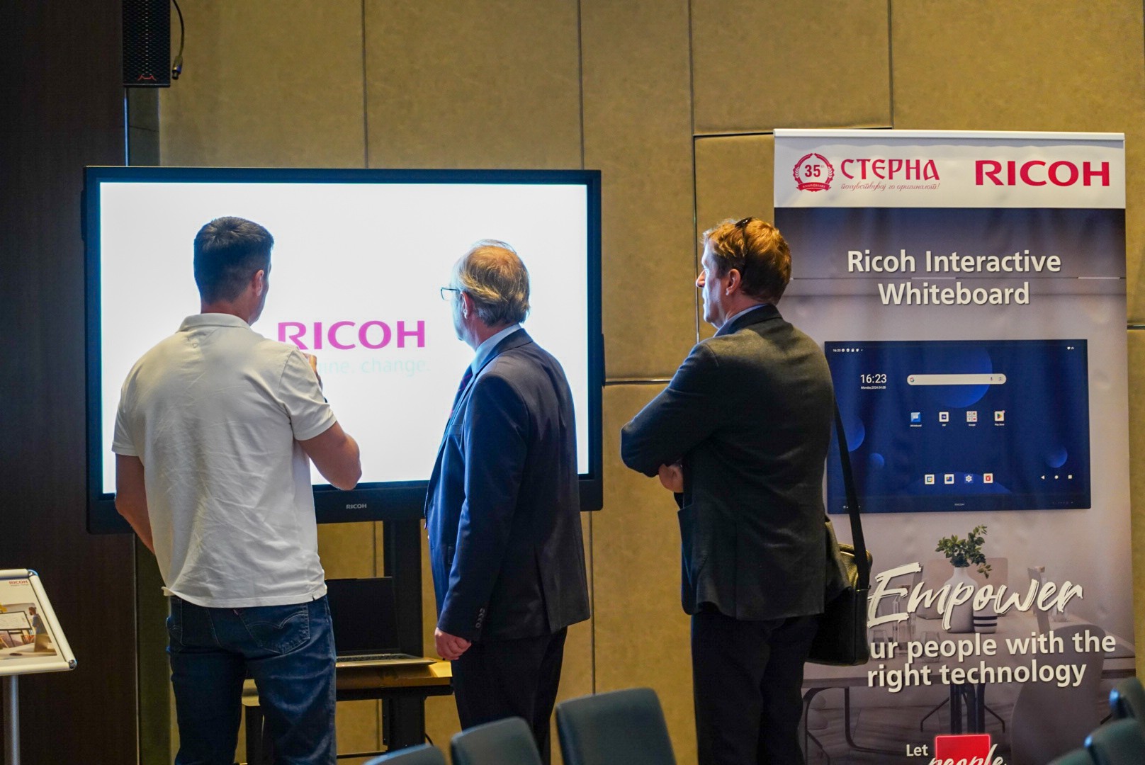 Настанот беше збогатен со изложба на најновите Ricoh мултифункционални печатари и интерактивни табли, овозможувајќи на присутните одблизу да се запознаат со технологијата и да дискутираат директно со експертите од СТЕРНА и Ricoh.