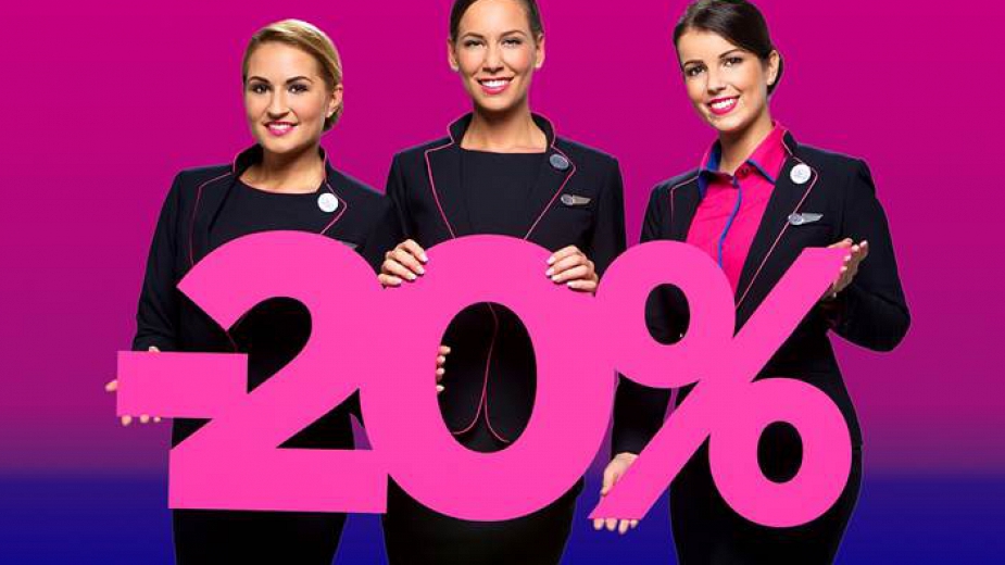 Нискотарифната авиокомпанија Wizz Air најави еднодневна промоција- 20% * намалени цени за сите линии и за сите летови резервирани денес, 27 јули, до полноќ.