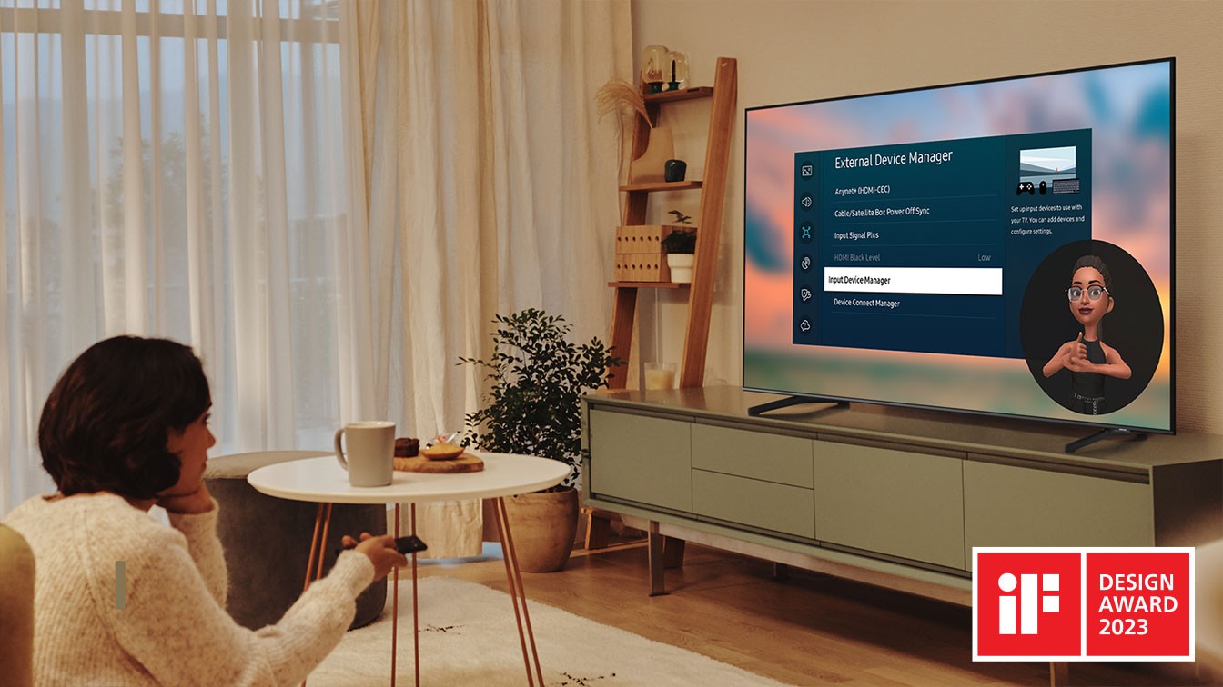 Понатаму, Samsung TV UX е исто така препознатлив по својата дизајнерска извонредност. Станува збор за опции кои вклучуваат Водич за знаковен јазик базиран на аватари, кој дава објаснувања на знаковен јазик на менијата на телевизорот, и Samsung Space Tycoon – игра базирана на симулација и управување со виртуелен простор на платформата Roblox metaverse. Таму, корисниците можат да креираат, да гејмаат и споделуваат искуства со помош на уредите Samsung.