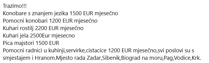 СЕ БАРААТ МАКЕДОНЦИ ЗА РАБОТА ВО ХРВАТСКА: Таксисти, готвачи, скараџии... плата и повеќе од добра, погледнете ги огласите