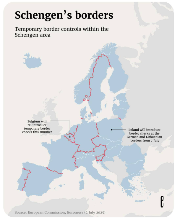 Со потегот на Полска, бројот на земји што спроведуваат контроли ќе се зголеми на 12. Белгија, исто така, објави дека ќе воведе гранични проверки подоцна ова лето. Критичарите тврдат дека зголемените ограничувања укажуваат на пошироко повлекување од принципите на отвореност и единство што ги претставува Шенген.