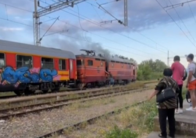 Инаку вчера на социјалните мрежи се појави и видео на кое се гледа како неколку луѓе се обидуваат со кофи со вода да го изгаснат пожарот, при што од локомотивата излегува густ чад.