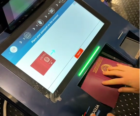 Децата под 12 години само го предаваат пасошот и им се скенира лицето, и мора да излезат од возилото без оглед на возраста.