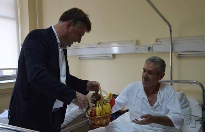 Градоначалникот на Скопје, Петре Шилегов, со корпичка овошје го посети во болница пожарникарот кој се повреди додека беше на должност, кога неодамна се запали зграда во Дебар маало.