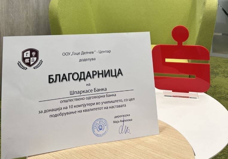 Шпаркасе Банка во согласност со својата корпоративна стратегија за општествена одговорност, овозможи донација на компјутерска опрема за учениците од основното училиште „Гоце Делчев“ во Скопје.
