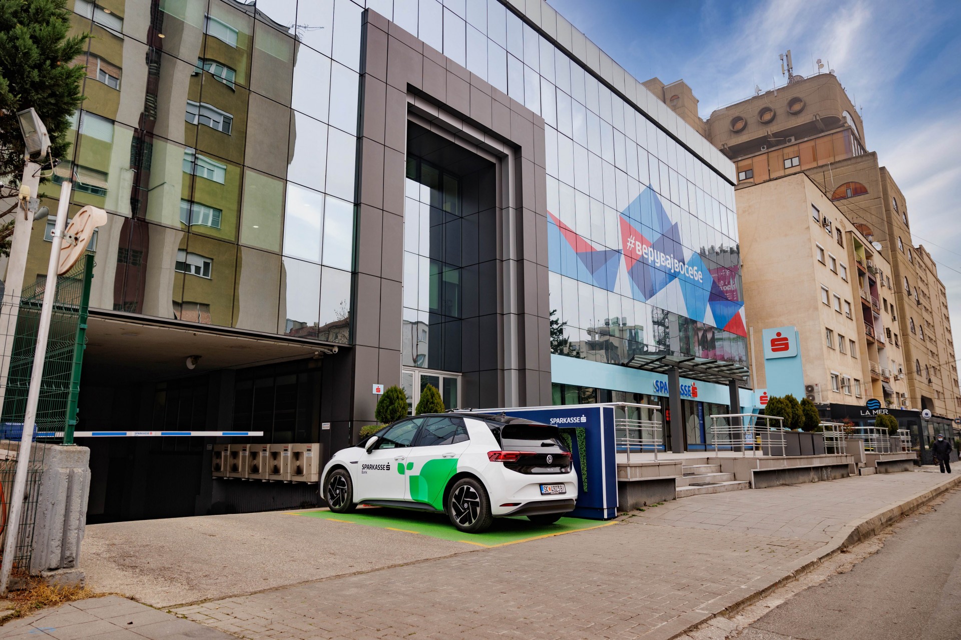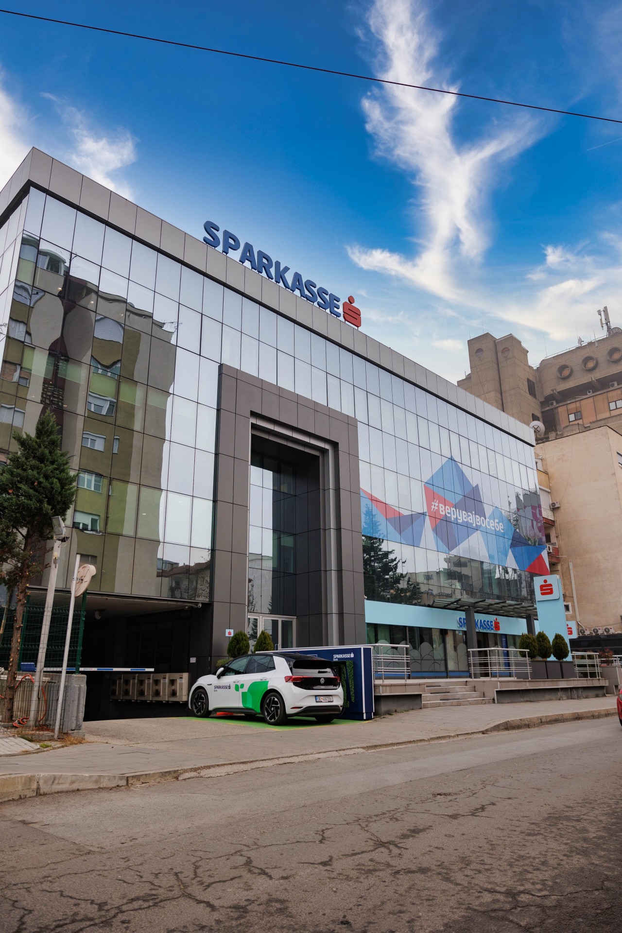 Како дел од зелената транзиција што е во тек, Шпаркасе Банка набави службено електрично возило за потребите на своите вработени и истовремено постави полнач за електрични автомобили со 100% зелена енергија.