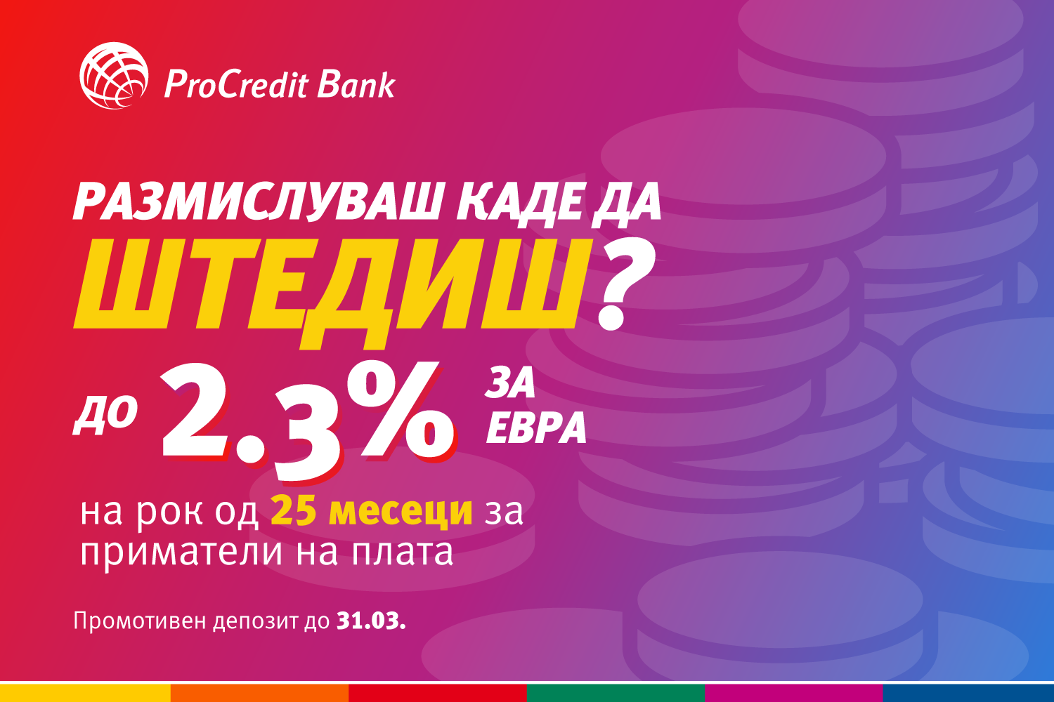 Во промотивниот период до 31 март, ПроКредит Банка нуди атрактивна фиксна каматна стапка за депозити