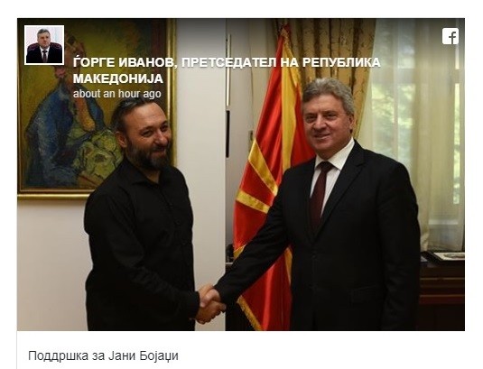 Претседателот на државата, Ѓорге Иванов преку социјалните мрежи му даде поддршка на режисерот на „Ругање со Христос“, Јани Бојаџи.