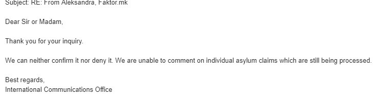 „Не можеме ниту да ви потврдиме, ниту да негираме. Не сме во можност да коментираме по индивидуални барања за азил кои се уште се процесираат“, одговориле од унгарската Влада за Фактор.