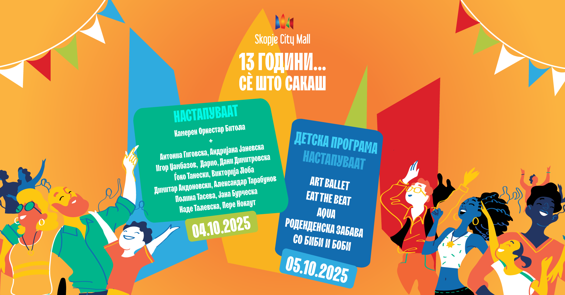 SkopjeCityMall оваа година одбележува 13 години постоење. По тој повод, од 3 до 5 октомври, сите посетители ќе уживаат во роденденскиот викенд со шопинг по намалени цени од 20% до 60%. Дополнително, ќе имаат можност да уживаат во богата програма со атрактивни концерти, креативни работилници и бројни изненадувања наменети за сите генерации.