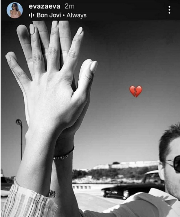 На црнобелата фотографија таа и Душко се прикажани во автомобил, а нивните раце се споени високо во воздух. Заева која со Душко беше во врска неколку години објави скршено срце и балада од Бон Џови.
