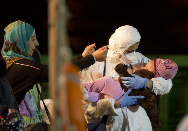 Слика на денот: Едно од спасените бебиња после трагедијата во водите на Либија