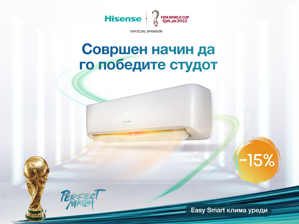 Инвертер клима уредот ќе ви се „најде“ додека ги гледате натпреварите во Катар, од удобноста на вашиот дом. Hisense, кој е генерален спонзор на FIFA World Cup Qatar 2022™, ќе обезбеди пријатна температура и најдобри услови за следење на натпреварите.