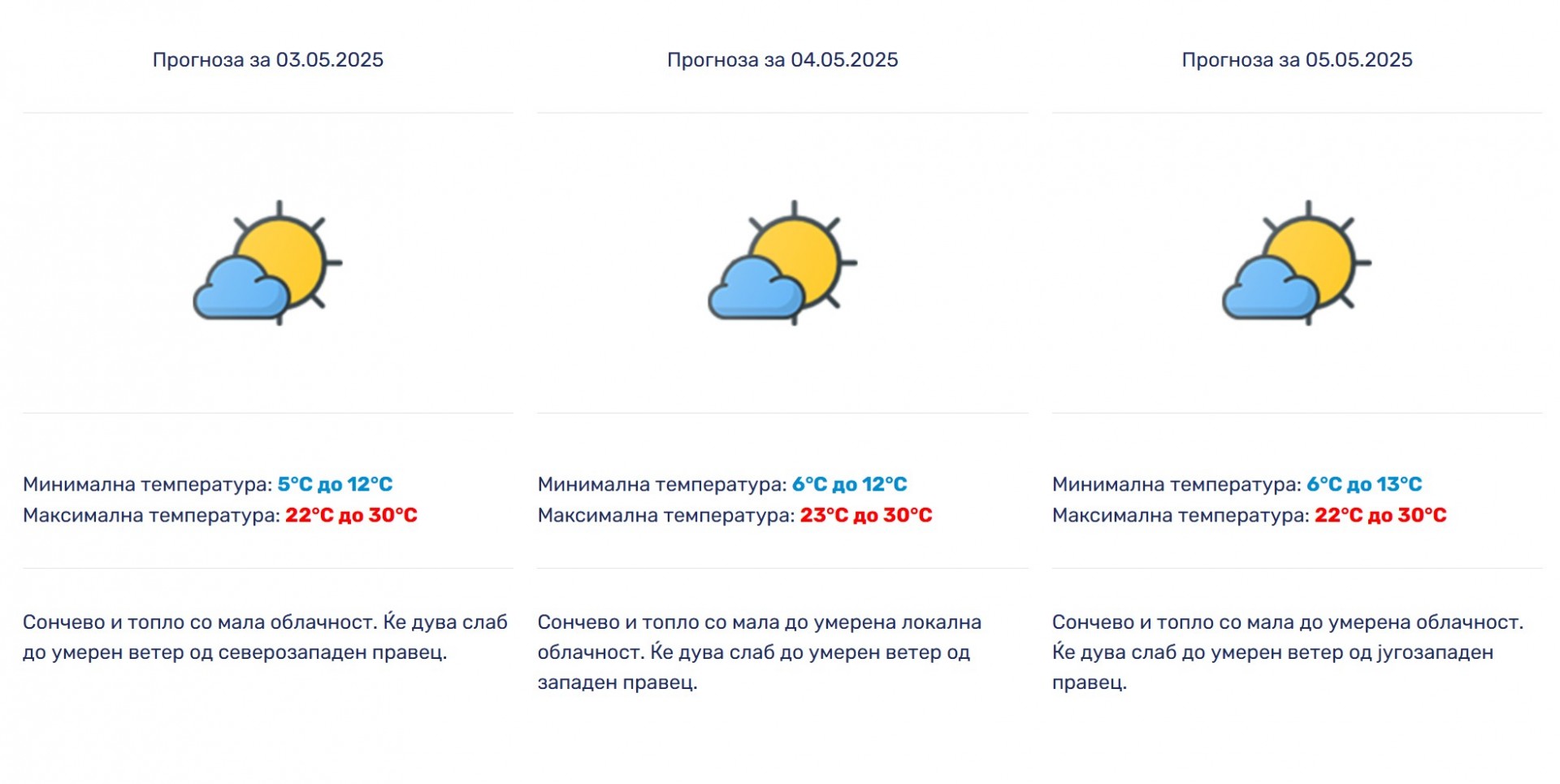 Температурите ќе бидат летни, и се очекува да се искачат до максимални 30 степени.